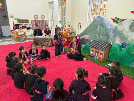Hoạt động giúp trẻ trải nghiệm nét đẹp văn hoá dân tộc Dao Thanh Y, tìm hiểu lễ hội truyền thống, cách làm xôi ba màu, từ đó bồi dưỡng tình yêu quê hương và ý thức gìn giữ bản sắc dân tộc.